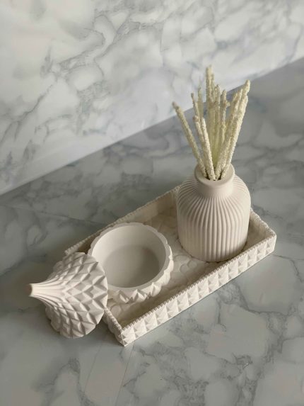 Material: The trinket tray is crafted from high-quality material “Jesmonite”. It is a casting material, feels like ceramic but comparatively light-weight
